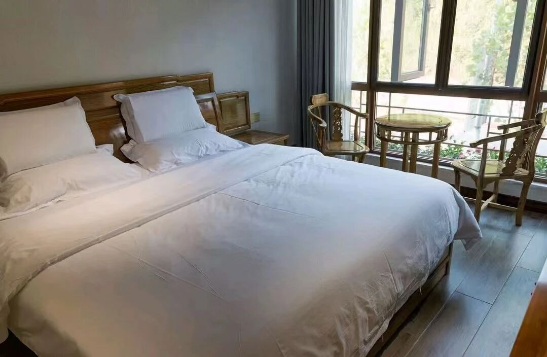 所有客房均采用纯手工定制的金丝楠木家具,每一件都散发着天然的木质清香,新中式装修风格与园林式打造相得益彰,还原一个古朴雅致的家。