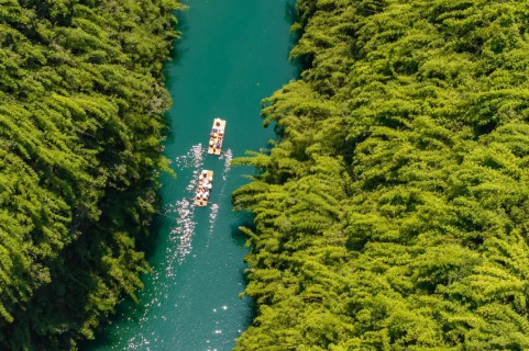 景区峡谷深幽,河水清澈,可沿栈道欣赏两岸青山绿水,体验竹筏放歌,感受苗歌伴竹筏的浪漫时光。或到青龙谷一游,溪流、峭壁、溶洞、瀑布,是探险和户外运动爱好者的天堂。
