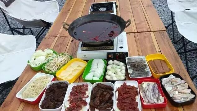 穿谷一天后在黑山谷星空露营基地享受户外火锅。山谷中凉风习习,仰望满天繁星,品尝热辣火锅,这种感觉不要太惬意。