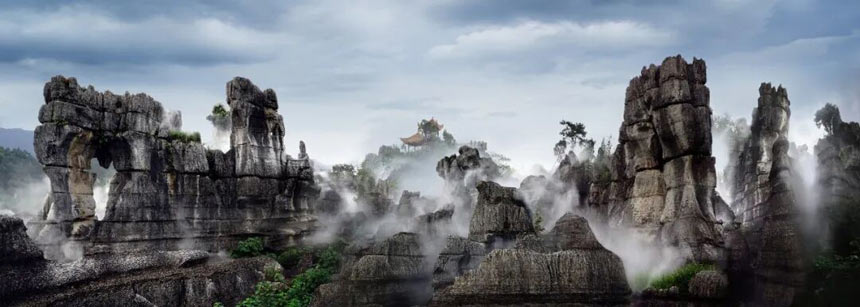 第二天、游万盛石林→吃石林干煸鸡→游梦幻奥陶纪 上午:万盛石林