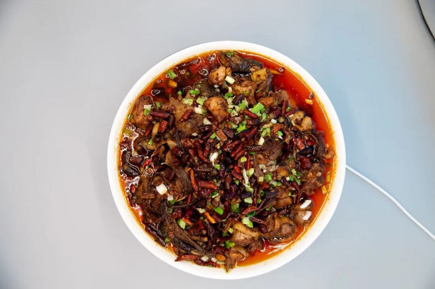 石林镇雅颂农家乐的“干煸鸡”是以万盛当地土鸡作为主要原料和创新突破口,结合干煸工艺,推出的招牌菜。口感爆香麻辣、口感酥脆,香气诱人,让人垂涎欲滴。