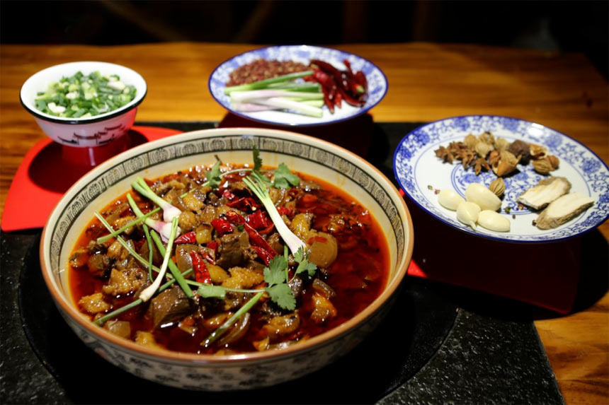 采用苗家祖传秘方慢炖而成的浓郁汤底,再配上色泽红润的牛肉,香味醇厚、汤汁浓郁,咬一口肉汁四溢,牛皮软糯Q弹,肉质酥烂入味,令人回味无穷。