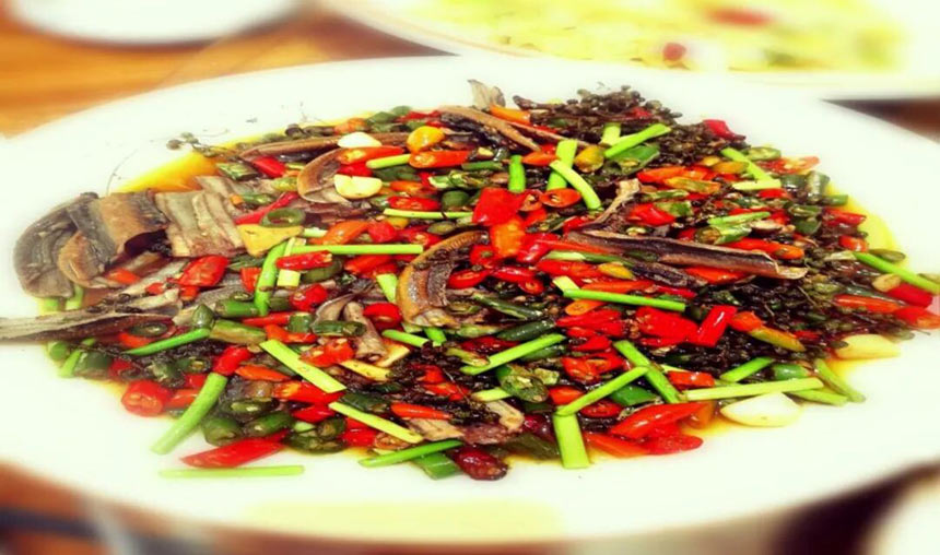 选用鱼子岗当地自然生长的土黄鳝烹饪,鲜香麻辣,爽脆可口,深受本地及周边地区食客们的喜爱。