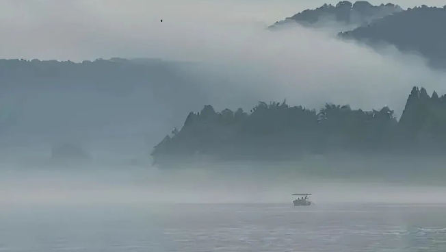 我甚至无须像过去的旅游那般,挨个打卡这里被标号的那几个景点,比如它的怪石迷宫、水月洞天、玉龙神剑等等地方,我只需往江边一坐,对着江面发呆,我就能感受到这里最美的江南风情。而这,就是周家寨最让我动心迷恋的原因。观乎斯江,宜晨宜昏。绝佳之际当取云升雾漫之时。