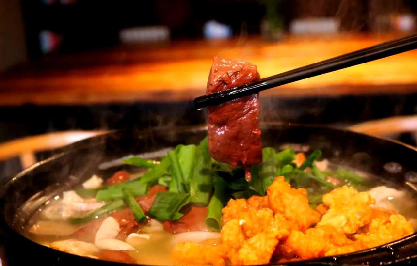 刨猪汤的锅里,猪血无疑是最为抢眼的食材。它颤巍巍地翻滚着,呈现出诱人的色泽,口感绵软而富有弹性,让人垂涎欲滴。