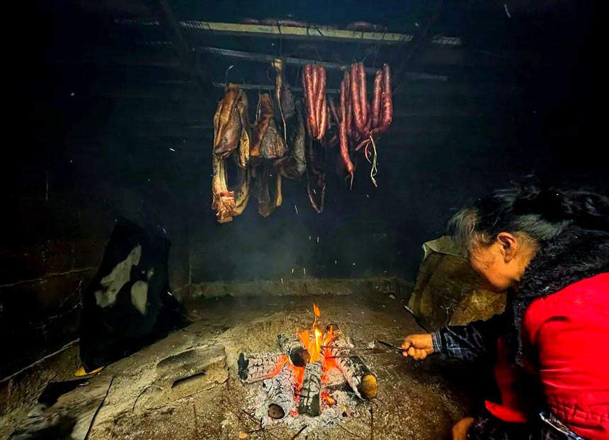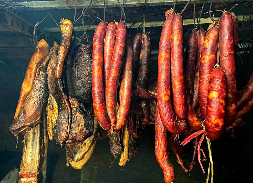 成品的腊肉香肠,散发出松柏枝特有的馥郁香气,色泽黄亮诱人。无论是清蒸、小炒还是煮火锅,其美味都无法用言语形容,让人回味无穷。