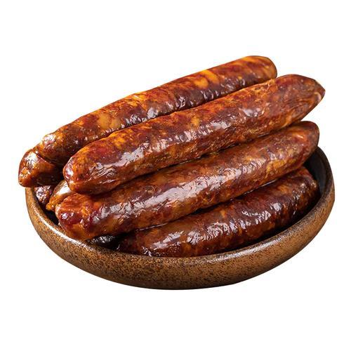 采用半肥半瘦的黑猪肉制成的香肠,色泽鲜亮,红白交织,外观干燥。每条香肠都经过精心制作,长短一致,粗细均匀。接着,将猪肉切成一寸厚、一尺长的长条形,经过腌制后晾晒,最后再用柴火进行熏制,从而赋予了香肠独特的风味。
