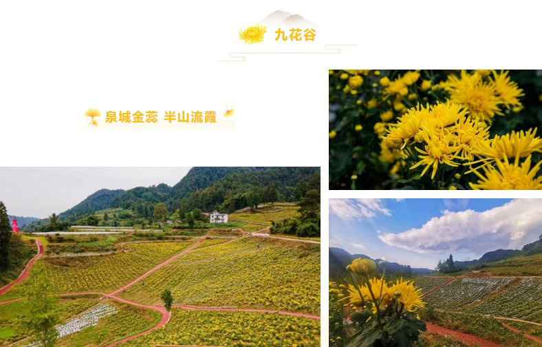 东温泉九花谷 满山遍野的金丝皇菊在秋阳映照下 生机勃勃的黄与秋日特有的蓝交相辉映 给游客贡献了一场视觉盛宴