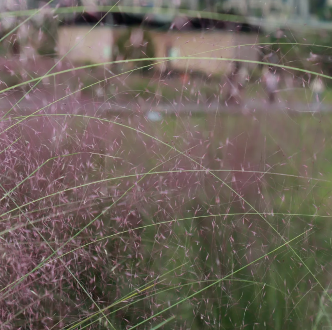附近还有粉黛草、草坪是晒太阳、露营的好去处