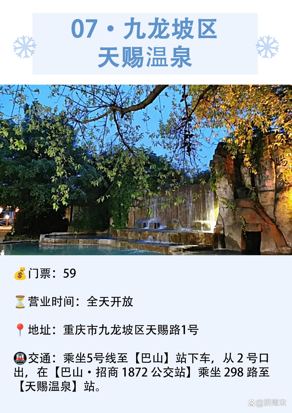 冬天来啦,山城的气温直线下降,正是泡温泉的绝佳时节。重庆温泉大大小小几十家,小编精心整理了12个重庆主城天然温泉的好去处。