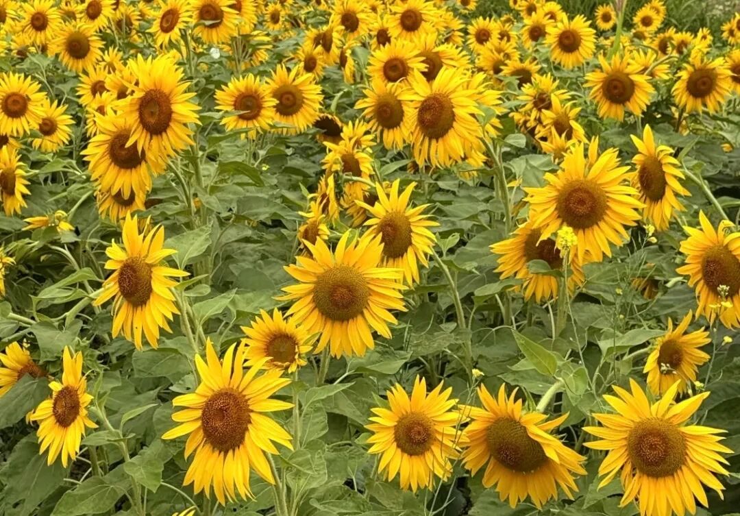 兴隆镇牛皇村的向日葵花海是重庆秋季的热门打卡地之一牛皇村的向日葵花海与200余亩七彩稻田相邻花田顺着山坡铺展明黄的花盘与白墙黛瓦的农舍、周边的树木相映成趣构成了一幅美丽的乡村画卷