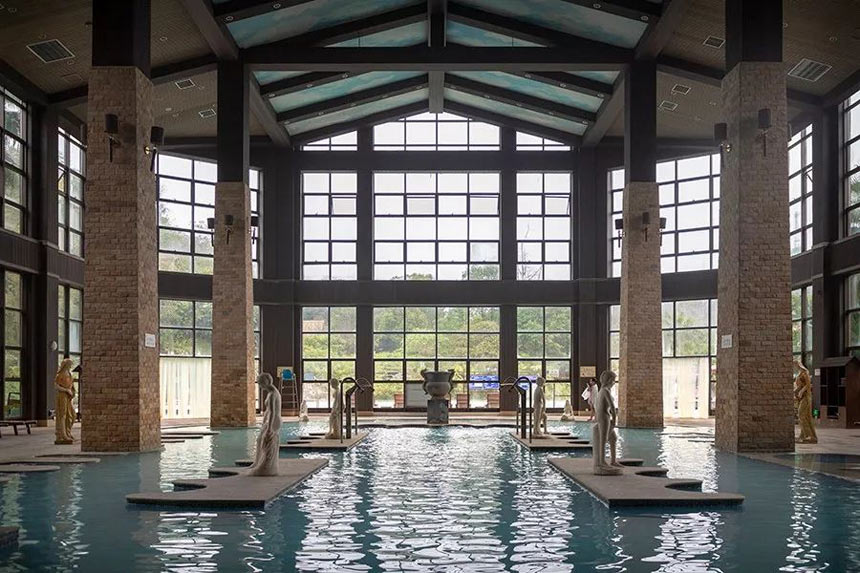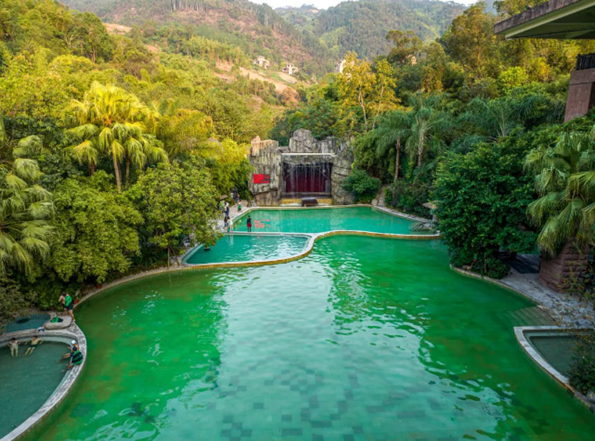 硫酸钙镁型优质医疗温泉,富含硫磺等70余种微量元素,改善皮肤和关节问题