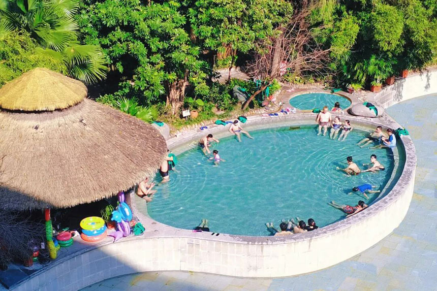 藏在北碚缙云山下、嘉陵江畔的百年古村,经过巧妙改造,既保留了原始风貌,又增添了现代舒适感。这里的温泉源自温塘峡的天然温泉,设有悬崖、溪流、森林、江边四种特色泡池,一票通玩所有。