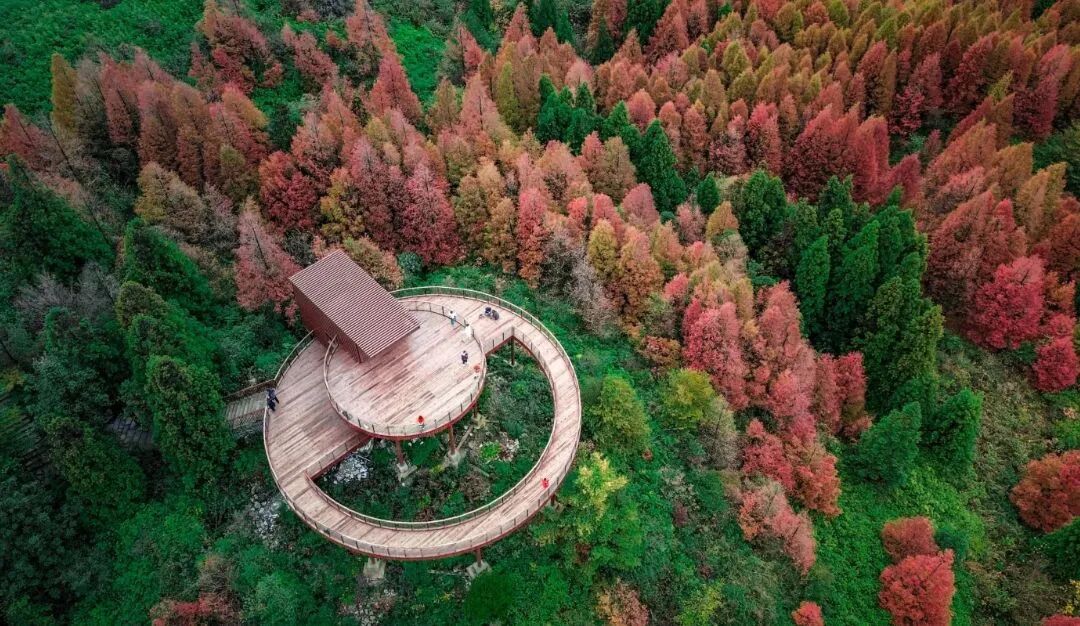 这里与乌江同框山水相依,风光旖旎仿佛是一幅流动的山水画卷可尽情漫步于林木之间看红枫轻舞,赏红黄交织