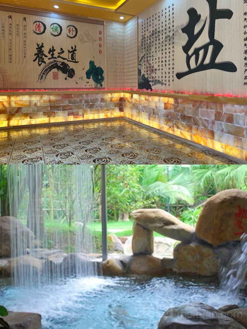 ♨️特色泡池:山庄有1个大的游泳池、7个小的温泉池,还有2个鱼疗池、1个盐疗池等。