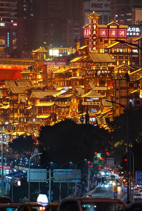 情侣出片:洪崖洞1层马路对面拍人像,灯光勾勒侧脸绝美;白象居复古胶片滤镜,自带电影感。
