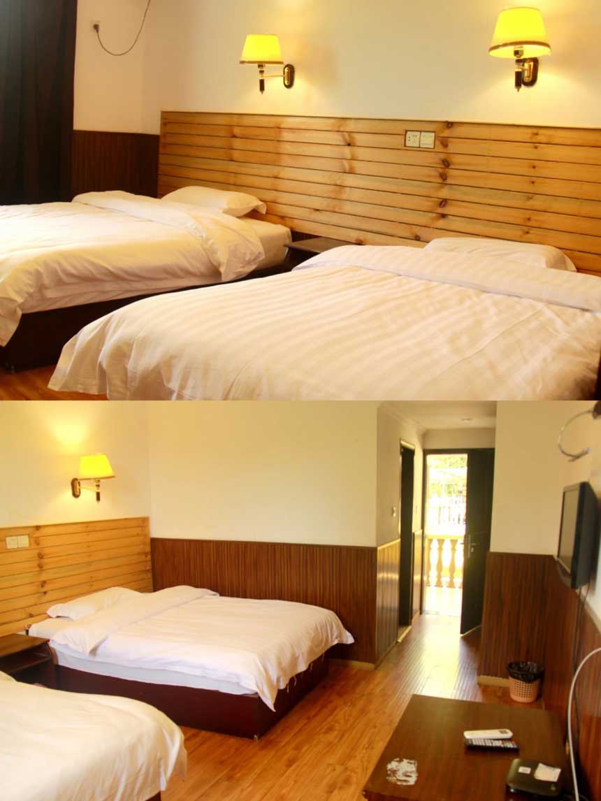 酒店可同时容纳约220人住宿,分别墅和酒店2种住宿环境。别墅共2栋,酒店配有标准间、三人间2种房型。