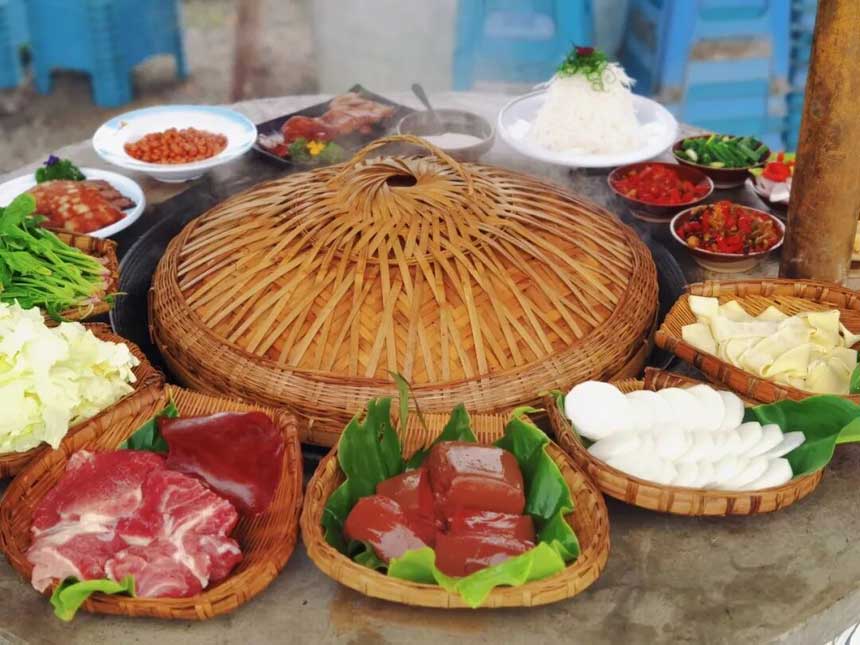 配菜:五花肉1份、大虾1份、方竹笋1份、莴笋头1份、香菇1份、木耳1份、藕片1份、魔芋1份、土豆1份