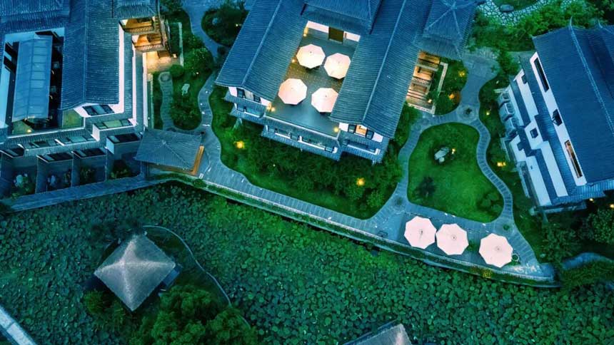 清栖谷—兰庭逸翠民宿,只听名字便让人心向神往,依河而建、温婉又优雅。沿青砖小径入院,便踏入了千年前古人笔下的诗词中。 兰庭逸翠各类房间共有65间,均以古诗词为名:飞泉、翰墨、静思、琴语……每一个房间都自带清雅的书卷气。 院中的茶食小院还可围炉煮茶,可满足家庭出行、公司年会一日游和宴席用房等多种住宿需求。 入住满15间房,还会举办篝火晚会。