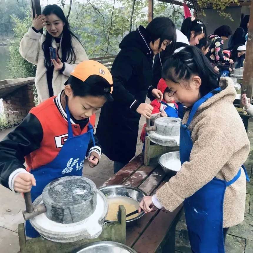 大家一起协作,用石磨磨出鲜甜的玉米汁,再过滤制作出美味的玉米羹,享受用勤劳双手制作出来的美食