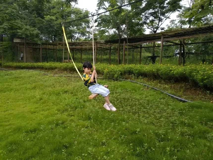 适合小朋友玩的低空滑索,安全又有趣,劳动后,来玩点休闲的小游戏,感受不一样的农场运动野趣