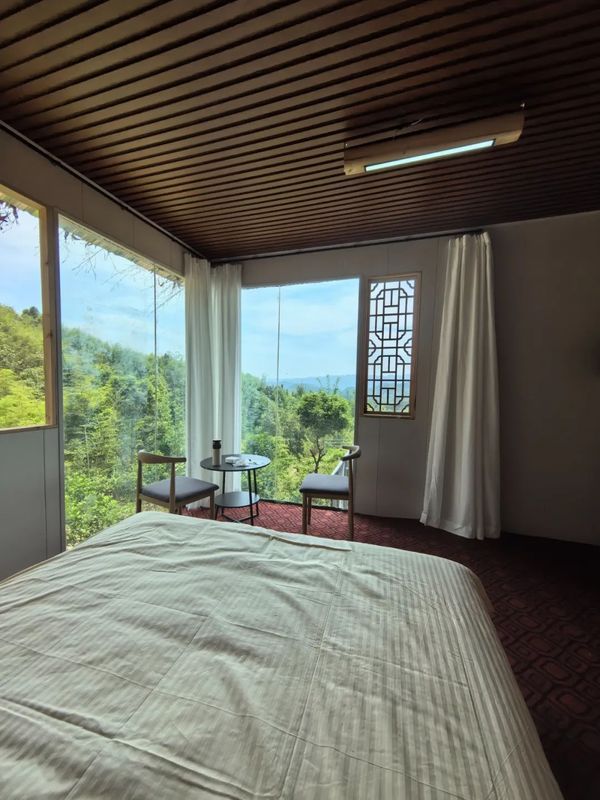 如果逢场作戏的社交太过复杂,透明的落地窗让您躺在床上,拉开窗帘去和草木对话,此间不断的微风虫鸣一遍又一遍抚慰您内心的焦躁。
