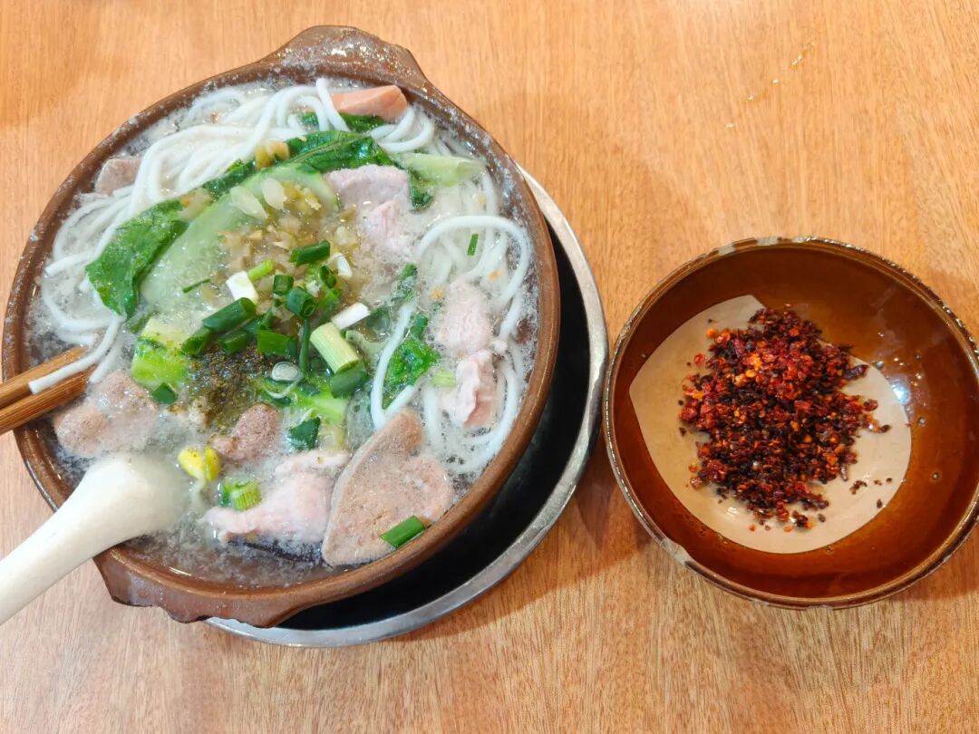如今的望江楼米线虽然换了店面但是味道依然不变11块的砂锅米线有滑肉、猪肝、火腿配上秘制的辣椒蘸碟一口一口停不下来来光顾的除了慕名而来的食客多的还是当地的老者对他们而言这是吃了几十年的“家的味道”望江楼米线只在上午时间开业来打卡的朋友千万别跑空