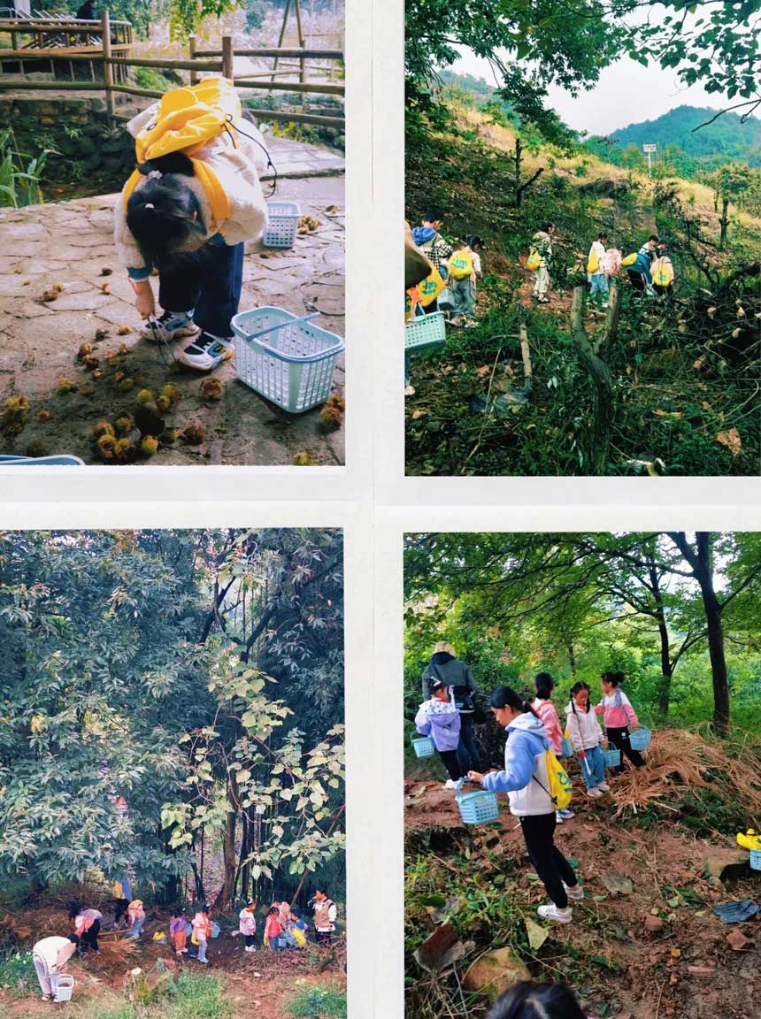 活动项目是根据季节定的,比如这个秋季有捡板栗,挖红薯烤红薯,烤爆米花,割稻子打稻子,做手工,做游戏等等。