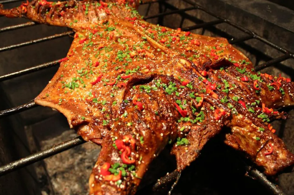 冬夜的石柱,少不了烤全羊的香气加持。 选用本地放养的山羊,肉质细嫩无膻味,经秘制调料腌制后,架在炭火上慢烤至外皮金黄酥脆、内里鲜嫩多汁。