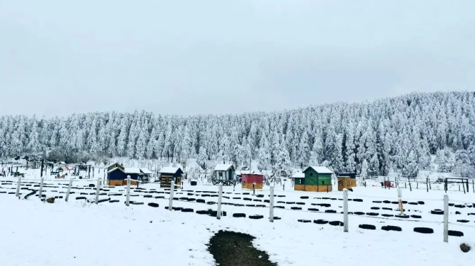 徜徉在仙女山雪地里 到处都能看见北欧风格的小木屋 登临“森林之眼”俯瞰林海雪原 整个世界都化作白色