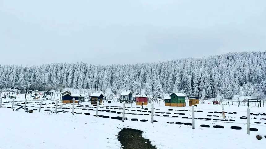 徜徉在仙女山雪地里 到处都能看见北欧风格的小木屋 登临“森林之眼”俯瞰林海雪原 整个世界都化作白色
