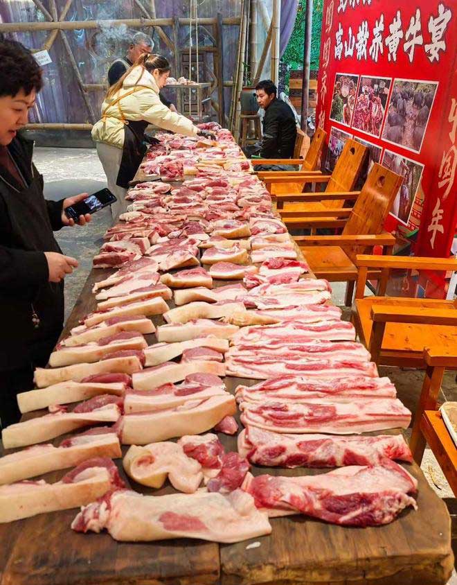 重头戏“杀年猪”仪式,绝对能点燃全场热情!农家散养的土猪,肉质鲜嫩紧实,由经验丰富的师傅现场操作,全程透明放心。看着肥壮的年猪被精心处理,团队成员围在一起说说笑笑,儿时过年的热闹感瞬间回归,陌生感在烟火气中消散,团队凝聚力悄悄升温。这不 仅是一场民俗展示,更是一次难得的团队破冰契机,让平日里忙碌的同事们卸下疲惫,重拾简单的快乐。