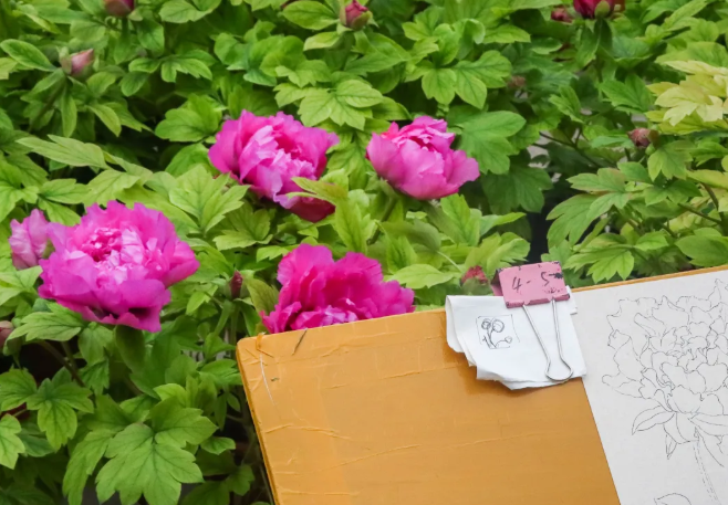 花影与人影交织 成为这个冬日最温暖的风景 身着旗袍或汉服在牡丹丛中回眸