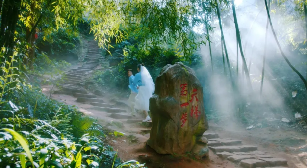 最让人肃然起敬的,是那感动过无数人的 “爱情天梯”,上世纪50年代,刘国江与徐朝清因世俗偏见私奔深山,为了让徐朝清出行安全,刘国江耗时半个世纪,在峭壁上一锤一凿凿出了这条“通天路”。
