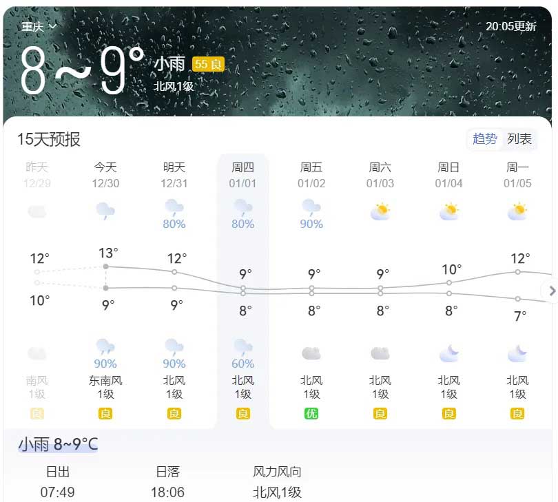 天气情况:据最新气象预报,活动日(1月1日)小雨,气温8~9℃,北风1级,晨间体感微凉,整体天气适宜户外登高,但需注意早晚温差。