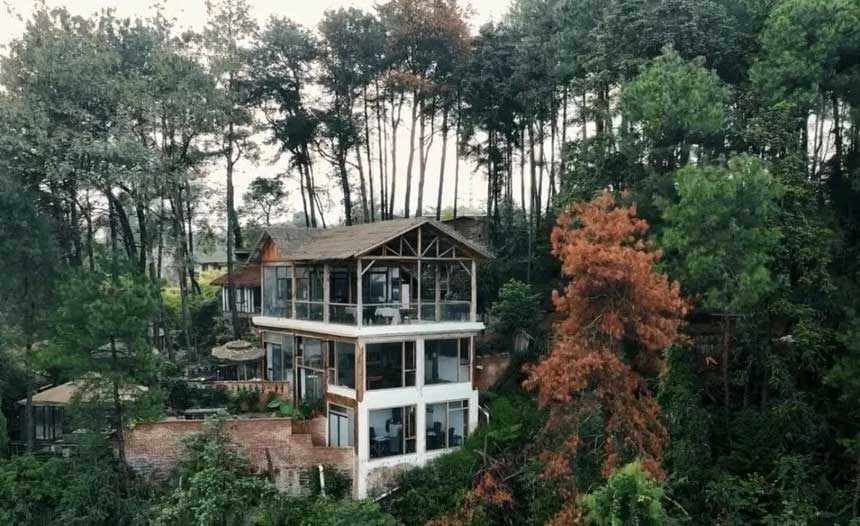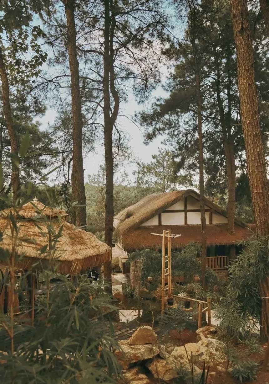 - 就地取材:老房拆下的青瓦、铁轨旁的枕木,全搬进森林