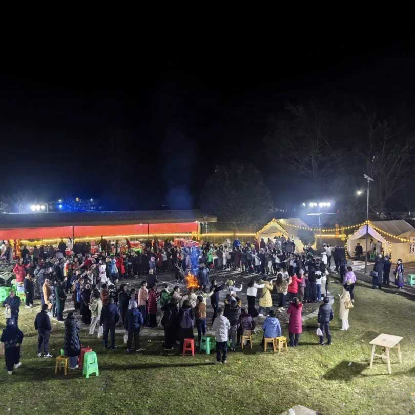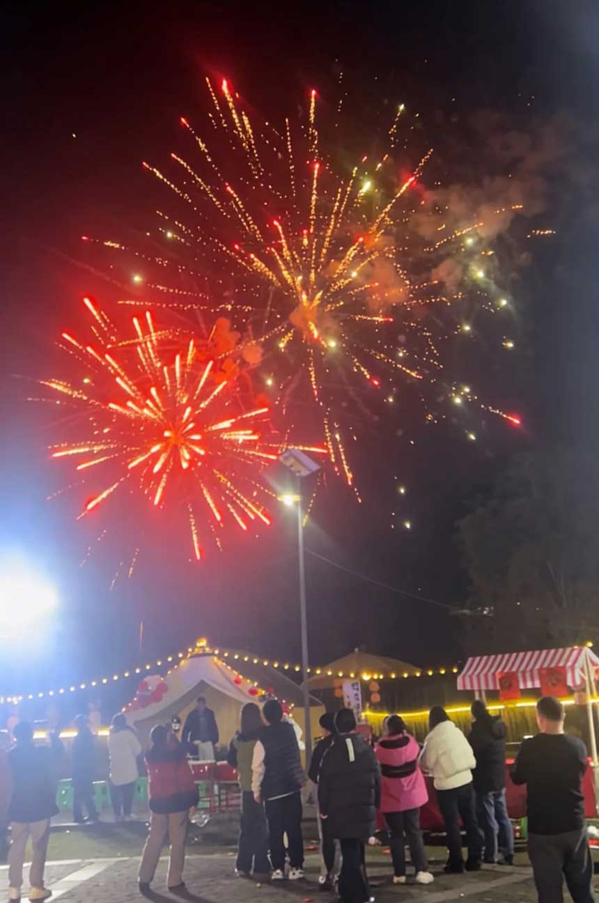 傍晚时分,水上餐厅再次迎来热闹的刨猪晚宴。游客们在享用完美食后,来到花田小院参加篝火晚会。专业领舞老师带领大家围绕篝火跳起彝族踏歌,欢声笑语在夜空中回荡。随后的星空烟花秀将活动推向最高潮,绚烂的烟花在夜空绽放,照亮了整个生态园。烟花秀结束后,露天电影和卡拉OK为游客提供了轻松惬意的休闲体验。