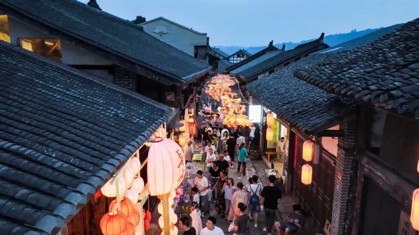 游客可提灯夜游,漫步于古镇的石板路上,也可在古镇内沿街逛吃逛吃打卡各种美食,快来松溉赴一场传统文化体验之旅吧。