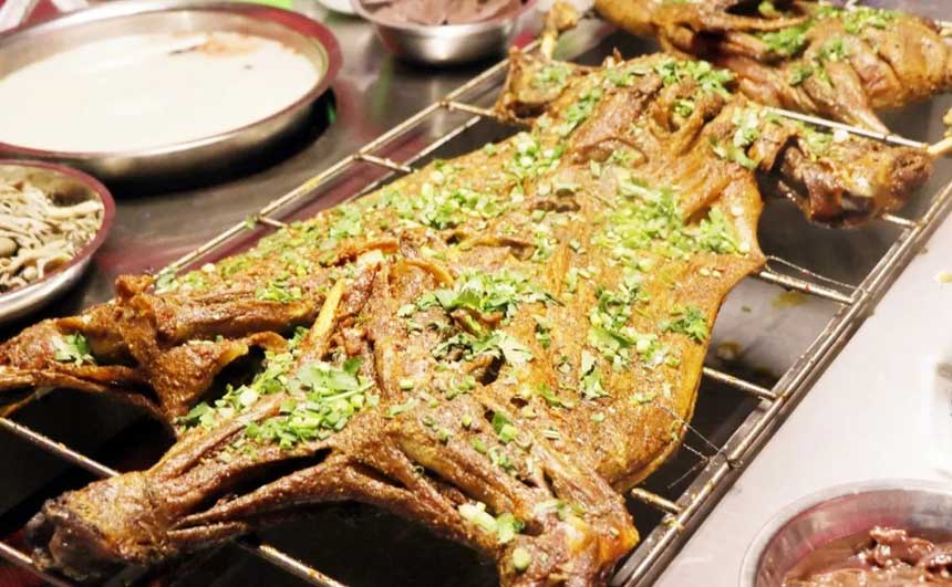 园区推出烤全羊自助团购活动,烤全羊畅吃!(温馨提示:12个人一桌上整羊,散客即自取)