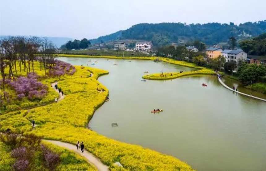 巴南云林天乡的油菜花开了哟看油菜花,云林天乡景区白鹭源休闲山庄赏油菜花来这儿~还有游船、烧烤、露营…安排!白鹭源休闲山庄有湖景房直接在房间里面可以赏花