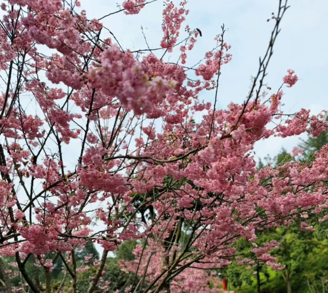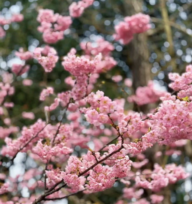 椿寒樱的花期通常20天左右喜欢赏樱花的朋友春节假期正是适合带上家人去园博园游园,免费赏樱花~