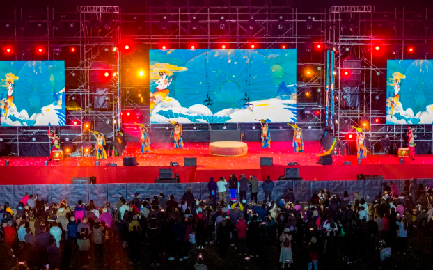演员们身着华丽传统服饰 以精湛的技艺和灵动的身姿 在高空演绎着飞天的绮丽传说 每一个回眸、每一次展袖 都尽显东方韵味 引得现场观众阵阵惊叹
