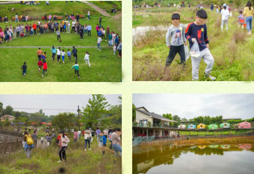 除了水果采摘福利 遇见天河生态农庄 田园乐趣多到数不清! 在草坪上追着小鸡跑 在草丛里寻宝式捡鸡蛋 这里还有很多休闲娱乐设施 钓鱼、钓龙虾、户外露营 烤烧烤、赏花等各类活动 给你带去丰富多彩的休闲时光