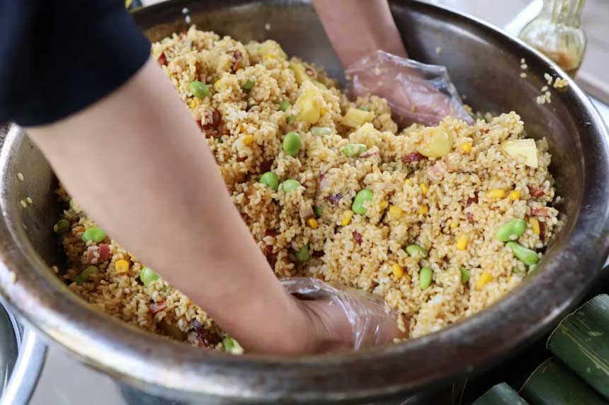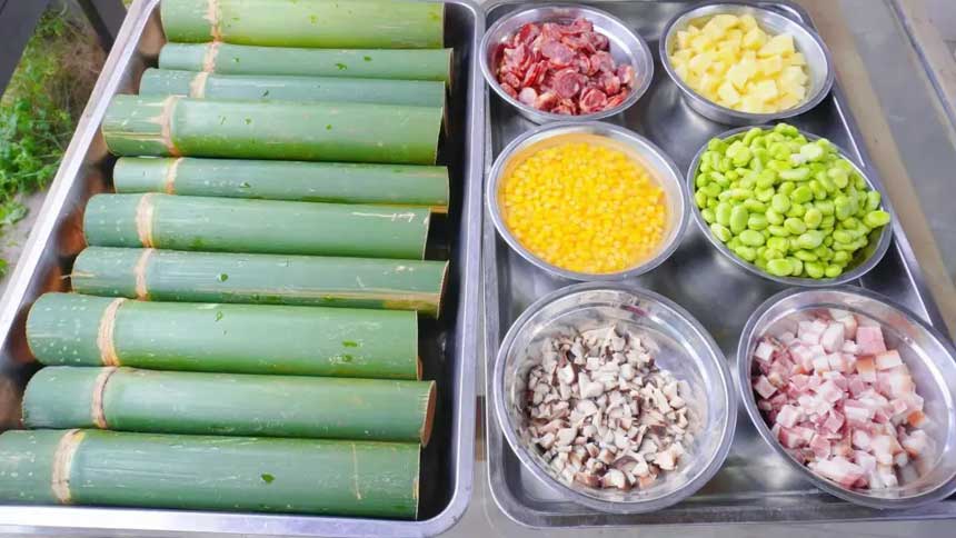 春日的仪式感 少不了一口软糯的清明粑 现包现蒸的清明粑 满是春天的味道 现烤竹筒饭料超足 竹香混着肉香直钻鼻腔 每一口都是地道田园鲜香!