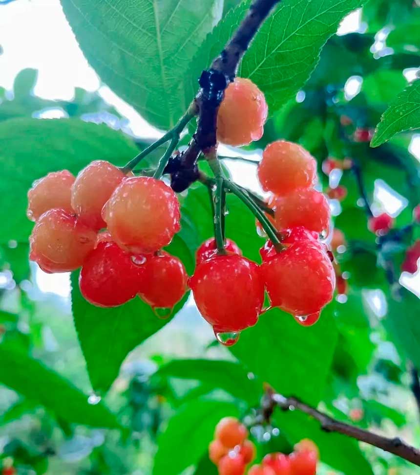 在巴南鱼洞 3000亩樱桃迎来成熟季 独特的气候和地理条件 孕育出了良种乌皮樱桃 色泽诱人、浓甜味香、肉质细嫩 吃起来像车厘子