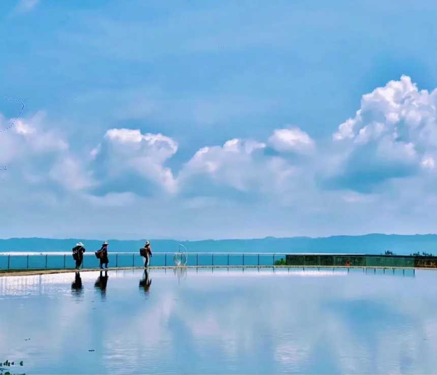 一定要去 “无边际水池” 白墙青瓦的建筑倒映在水中 背景是连绵的茶山 随手一拍都是东方美学大片