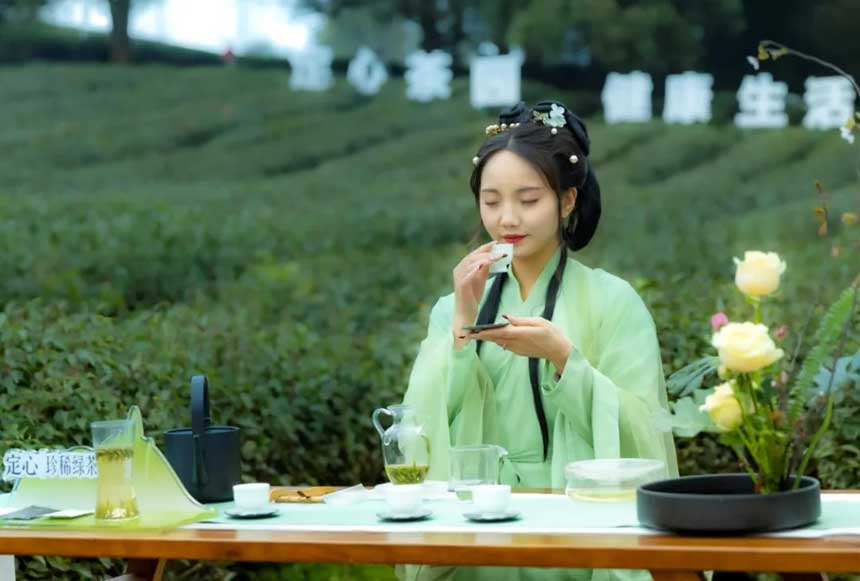 背篓采茶:换上碎花裙或租一套汉服/采茶服,提上小竹篓,亲手摘下那一芽一叶。