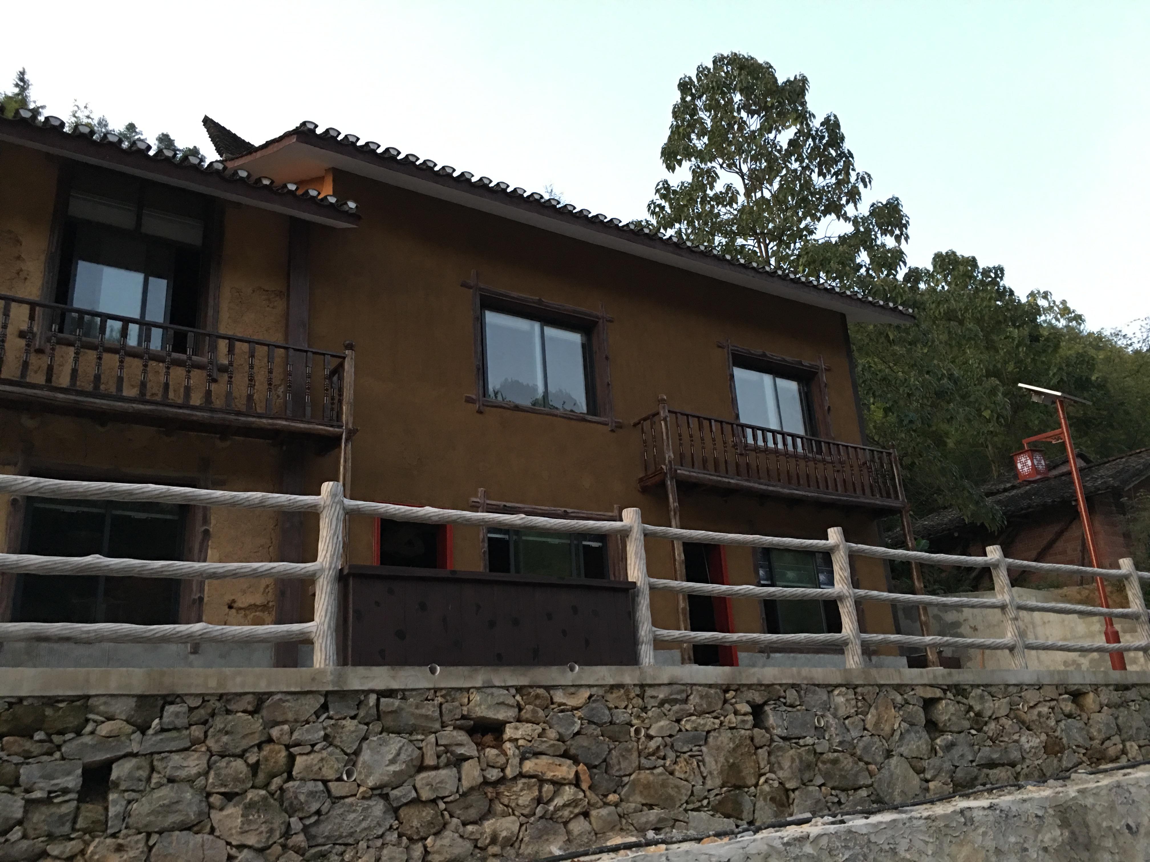 第二个民宿也跟第一个在同一个小镇上,但相距有一段距离。总体地理环境都差不多,也是高山、高森林覆盖率,夏季也很凉爽。这个民宿的兴起,可以说是一段缘分。国家脱贫攻坚以来,每个单位每个部门都安排了扶贫任务,市里的一个部门就被安排结对帮扶这个贫困村。这个村除了偏远,其实自然条件还不算差,大山云雾、悬崖峭壁、古树人家,很有一番农村韵味,是一个能让人记住乡愁的地方。村里有风景、有老宅子、老院落,市里就想到了发展旅游业,开发民宿。于是联系了设计单位进行设计。