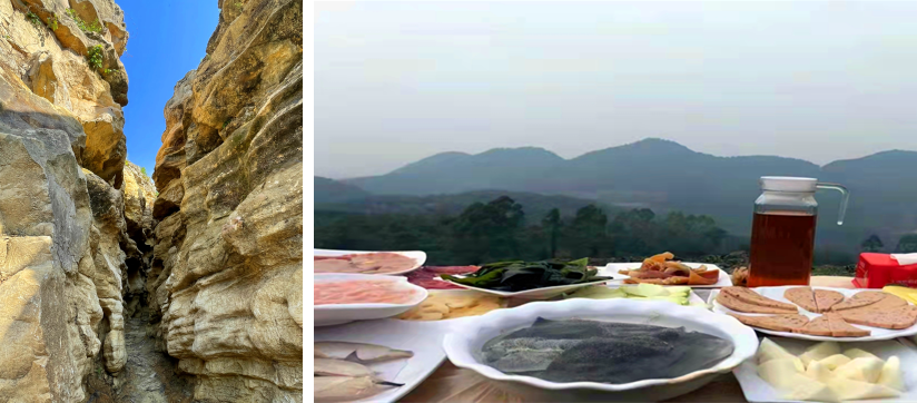 利用这一景观特色,蜂窝坝村还打造了以“体验乡情”为主题的叠石火锅。开发叠石景区,并相继推出与景区配套的叠石养生火锅、柴火鸡等特色美食,让游客来了能体验其别具一格的美食美景。