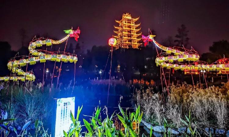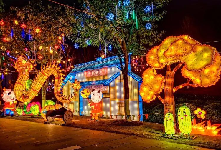 其中铜梁人民公园布展有60多个灯组,是本次龙灯艺术节最华丽的篇章。